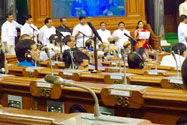 తెలంగాణ రాష్ర్టానికి సొంత హైకోర్టును ఏర్పాటు చేయాలని పార్లమెంటులో అలుపెరుగని పోరాటం చేస్తున్న టీఆర్ఎస్ ఎంపీలు శుక్రవారం వినూత్నంగా నిరసన తెలిపారు.
