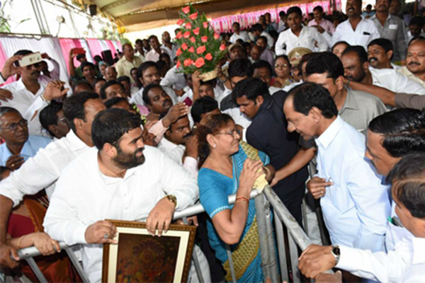 CM KCR distributes land pattas to the poor people