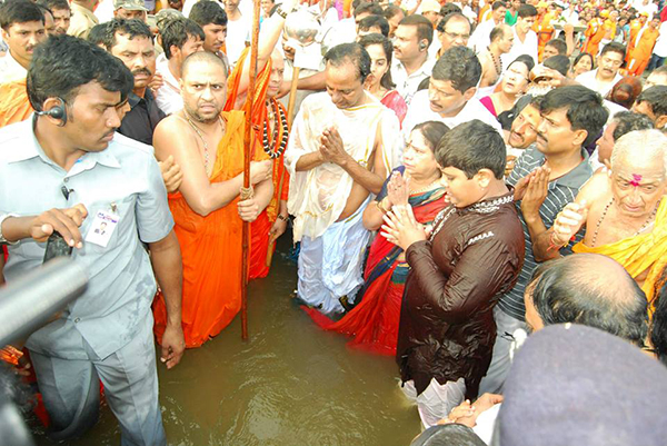CM KCR takes part in Godavari pushkaralu in Dharmapuri