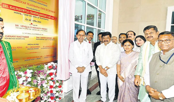 వైభవోపేతంగా నిర్మించిన ‘డాక్టర్ బీఆర్ అంబేద్కర్ తెలంగాణ నూతన సచివాలయ’ భవనాన్ని సీఎం కేసీఆర్ ఆదివారం ప్రారంభించారు. తెలంగాణ అమాత్యులు, ఉన్నతాధికారులు, ప్రముఖులు, అతిరథ మహారథుల సమక్షంలో, వందలాది వేదపండితుల వేదాశీర్వచనాల ప్రతిధ్వని నడుమ, పవిత్ర హోమ, ధూమ సన్నిధిలో ముఖ్యమంత్రి, మంత్రులు తమ చాంబర్లలో ప్రవేశించి ఆసనాలను అలంకరించారు. నూతన సచివాలయంలో కొత్త చాంబర్లో తొలిరోజు పలు ప్రజోపయోగ ఫైళ్ల మీద సంతకాలు చేశారు.